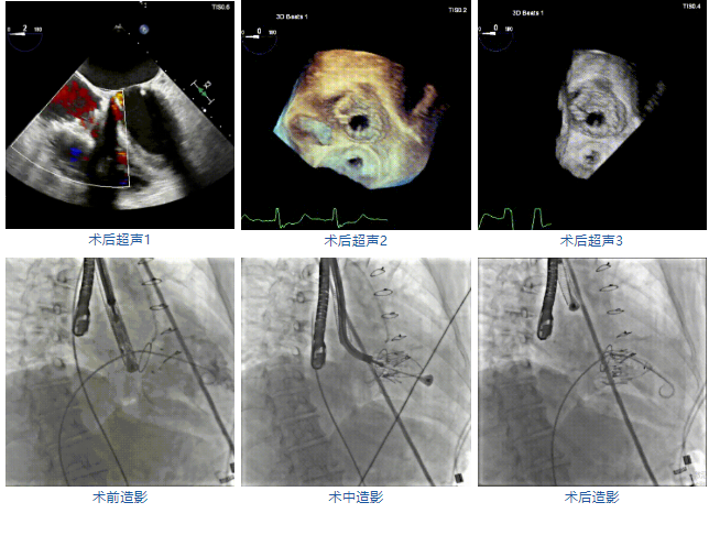 本次接受治療的患者是一名74歲的女性,14年前因風濕性心臟病行二尖瓣生物瓣植入術(shù),合并房顫。近3年來反復因腹脹、納差、下肢水腫入院,藥物治療欠佳。心臟超聲顯示三尖瓣極重度反流(有效反流口面積:0.76cm²,反流容積:79ml),繼發(fā)性右房室增大及上、下腔靜脈增寬(右房上下徑*左右徑:52*41mm,右室左右徑:46mm,下腔靜脈:29mm),右室收縮功能正常,肺動脈收縮壓 43mmHg,左心室射血分數(shù)73% ?;颊呒韧_胸手術(shù)史,術(shù)前評估STS 評分為7.02分,CRS 9分,無法接受體外循環(huán)下三尖瓣外科手術(shù)。面對這一傳統(tǒng)治療無法解決的困境,葛均波院士及其團隊周達新教授、潘文志教授、張源博士、陳莎莎博士及心超室的潘翠珍教授、李偉教授經(jīng)過討論決定,采用創(chuàng)新的Lux-Valve Plus系統(tǒng)為患者進行經(jīng)血管三尖瓣置換。