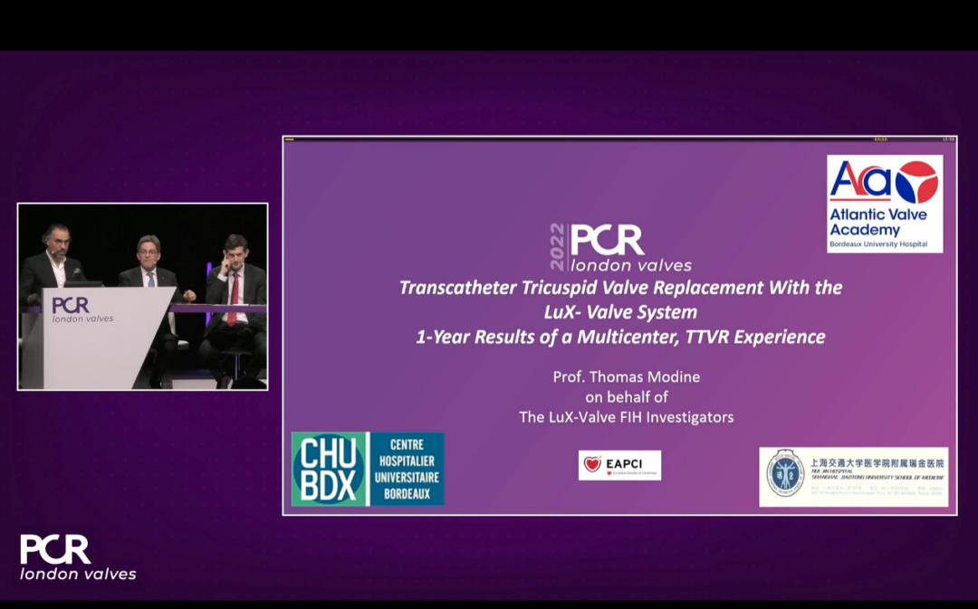 在本次大會(huì)上,法國(guó)波爾多大學(xué)醫(yī)院Thomas Modine教授公布了LuX-Valve FIM一年臨床數(shù)據(jù),并線上指導(dǎo)德國(guó)Mainz中心Ralph Stephan von Bardeleben教授進(jìn)行了其所在中心的LuX-Valve Plus首例植入。在亮眼的臨床數(shù)據(jù)與精彩的手術(shù)實(shí)踐結(jié)合中,與會(huì)專家充分感受到了三尖瓣介入領(lǐng)域中國(guó)原創(chuàng)器械的魅力。