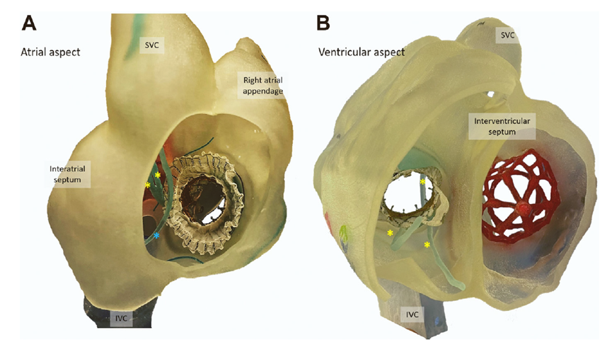 術前CT分析結果顯示,瓣環(huán)大小為47.6mm,血管無明顯迂曲和鈣化。由于患者三尖瓣解剖結構復雜,二尖瓣位人工瓣膜造成的超聲偽影和ICD導線的干擾使得歐洲沒有其他合適的商業(yè)化和臨床試驗的產品可以對其進行治療。經過Rodrigo Estévez-Loureiro教授團隊的詳盡術前評估,認為LuX-Valve Plus經導管三尖瓣置換系統可以對該患者進行有效的治療。因此,Rodrigo Estévez-Loureiro教授團隊最終決定使用這一中國創(chuàng)新器械為患者進行手術。法國波爾多大學附屬醫(yī)院的Thomas Modine教授與加拿大圣保羅醫(yī)院的Anson Cheung教授參與指導。
