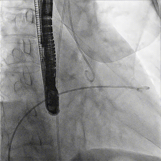 接受手術(shù)的為一名80歲男性,因“心悸2年,氣喘伴下肢水腫半年”入院。超聲心動提示“極重度三尖瓣反流,右房及右室明顯擴(kuò)大,右心收縮功能輕度減低,左心收縮功能正常,肺動脈壓力正常”?;颊咄瑫r合并有“持續(xù)性房顫”及“慢性心力衰竭”,病史持續(xù)2年,規(guī)律口服抗凝及強(qiáng)心、利尿治療治療效果不佳,癥狀持續(xù)。經(jīng)廈心心臟團(tuán)隊(duì)評估后,認(rèn)為患者三尖瓣極重度反流并伴有心衰表現(xiàn),長期內(nèi)科藥物治療效果不佳,且患者高齡、外科手術(shù)風(fēng)險(xiǎn)高,因此決定采用微創(chuàng)經(jīng)頸靜脈LuX-Valve Plus三尖瓣置換系統(tǒng)為患者治療。