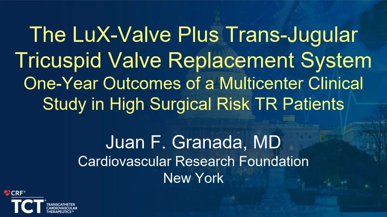 10月29日,本次 TCT 2024 會議的結(jié)構(gòu)心日程中,來自美國心血管研究基金會(Cardiovascular Research Foundation, New York, U.S.)的Juan F. Granada教授攜手中山醫(yī)院葛均波院士團隊一同正式公布了 LuX-Valve Plus TRAVEL II 確證性臨床研究的1年期試驗結(jié)果。