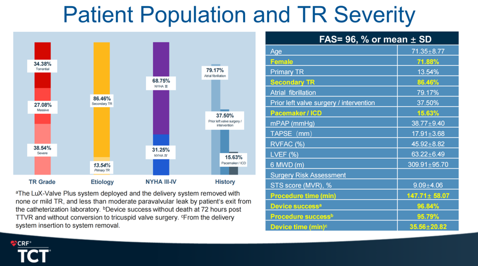 近期,LuX-Valve Plus在2024美國經(jīng)導(dǎo)管心血管治療學(xué)術(shù)會議(TCT 2024)上,正式全球公布了TRAVLE II 臨床試驗研究1年期隨訪結(jié)果,這是繼今年6月紐約瓣膜會(New York Valves 2024)6個月隨訪結(jié)果公布后的再一次重磅成果分享,展示了經(jīng)導(dǎo)管三尖瓣介入置換領(lǐng)域的重大研究發(fā)現(xiàn),其結(jié)果令人矚目。