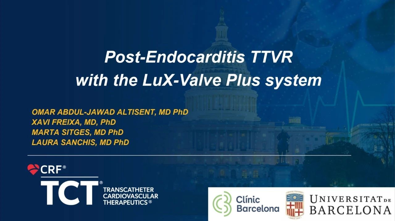 除了公布1年期數(shù)據(jù)以外,來自巴塞羅那臨床中心醫(yī)院(Clinic Barcelona)的Omar Abdul-Jawad Altisent博士還進行了一個病例報告的分享。一名 59 歲男性患者有高血壓、肥胖、A型肝炎,永久性房顫等病史,同時患有三尖瓣心內(nèi)膜炎伴隨三尖瓣返流,右心衰,膿毒性肺栓塞,肺氣腫并需要長期待在 ICU。根據(jù)巴塞羅那臨床中心醫(yī)院治療三尖瓣返流的規(guī)則,因為不能接受的高風(fēng)險患者首先拒絕了開胸手術(shù)這個選項;隨后在評估是選擇修復(fù)還是置換路徑的時候,由于患者瓣環(huán)擴張嚴(yán)重而且中間有較大開口,因此在CT評估決定后,該中心選擇 LuX-Valve Plus 系統(tǒng)進行三尖瓣置換手術(shù)。術(shù)后 30天隨訪顯示,所有功能性和生活質(zhì)量指標(biāo)都有提升,心功能從原來的 NYHA III 級回到 I/II 級,KCCQ 評分提升37分;6個月期隨訪數(shù)據(jù)顯示心功能改善至 NYHA I 級,KCCQ 評分提升42分。最后,Omar博士總結(jié)道,這是第一例成功用于患有心內(nèi)膜炎,嚴(yán)重?zé)o菌性贅生物以及晚期右心衰竭的患者的經(jīng)皮的三尖瓣置換手術(shù)。LuX-Valve Plus 獨特的設(shè)計,包括室間隔錨定,40-70mm可選的多樣型號,讓這款產(chǎn)品能應(yīng)對各種非常挑戰(zhàn)的三尖瓣解剖結(jié)構(gòu)。