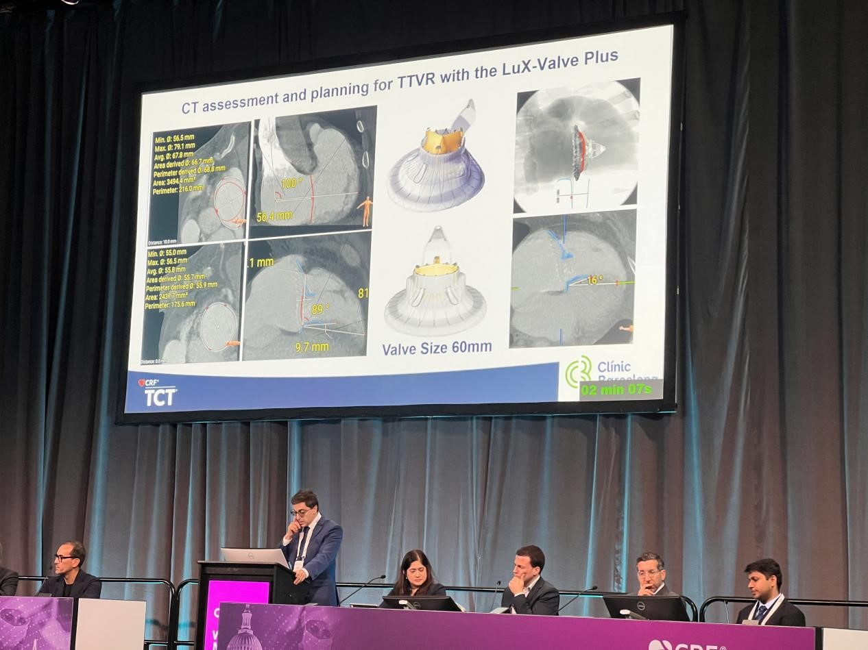 三尖瓣毫無疑問是本次 TCT 會議結(jié)構(gòu)性心臟病版塊最受歡迎的內(nèi)容,更多的內(nèi)容和討論圍繞經(jīng)導(dǎo)管三尖瓣置換術(shù)(TTVR)在治療重度三尖瓣返流(TR)伴外科高危風(fēng)險患者中的安全性和有效性展開,同時也涌現(xiàn)出很多關(guān)于術(shù)中挑戰(zhàn)性解剖和輔助技術(shù)的討論。